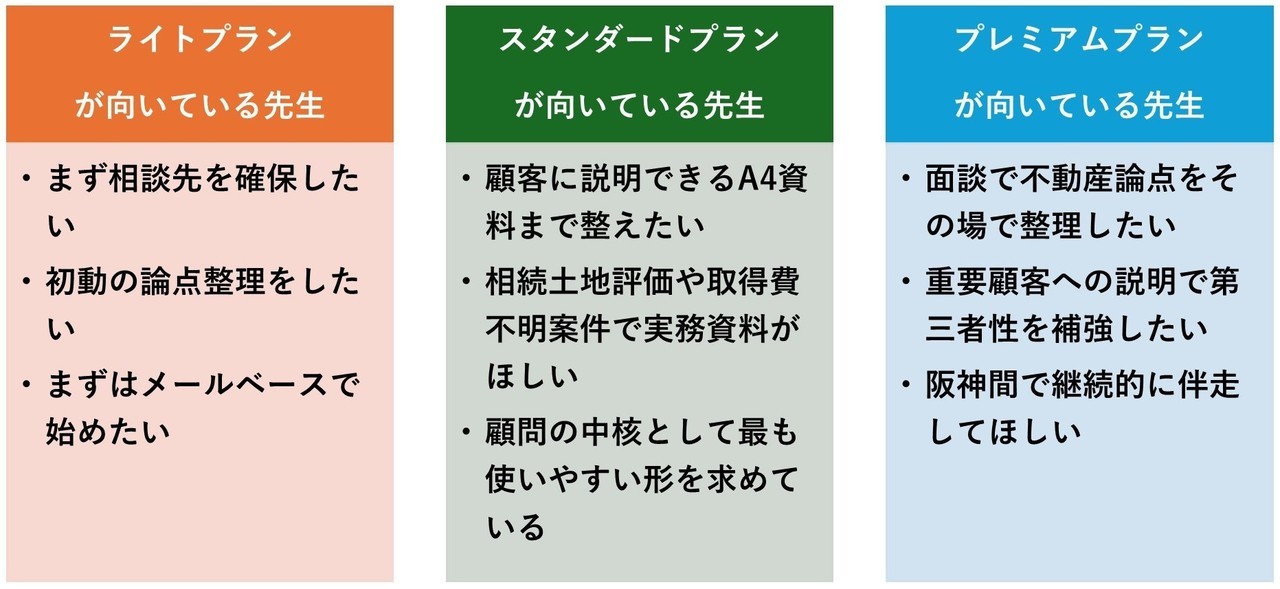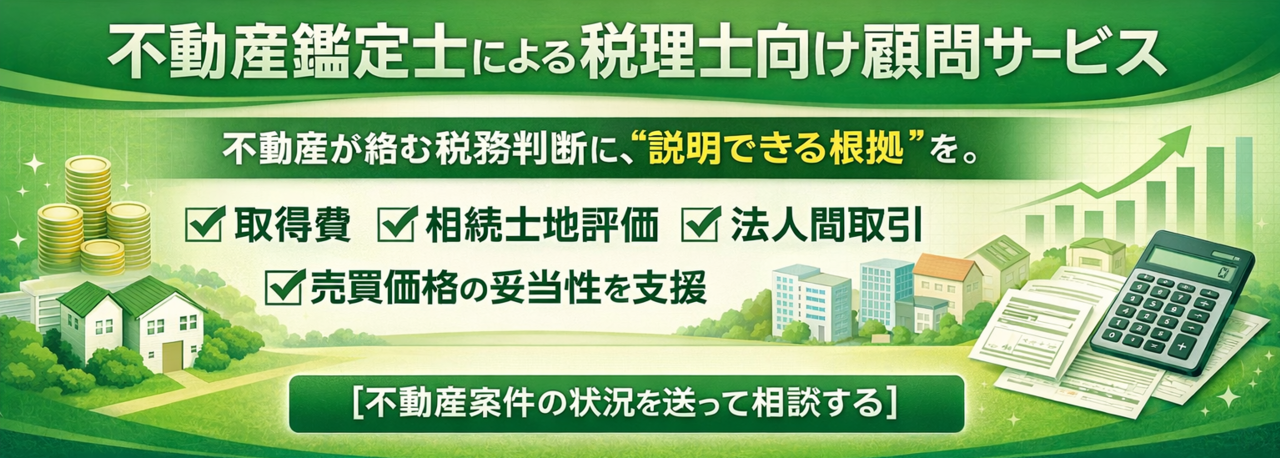本サービスでは、税理士の先生が不動産案件に直面した際、まず不動産側の論点を整理し、判断材料を整える支援を行います。